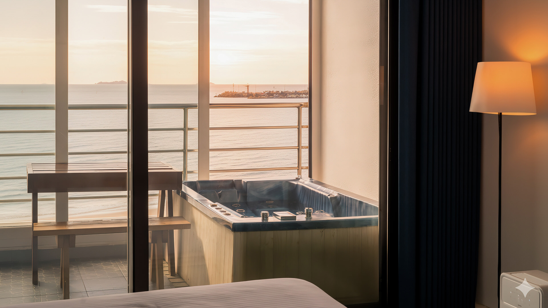 - 집기품목 : 욕실용품, 남녀공용, TV, 금연, 냉장고, 에어컨, 전기밥솥, 취사시설/도구, 식탁, 드라이기, 스파/월풀, 바다전망